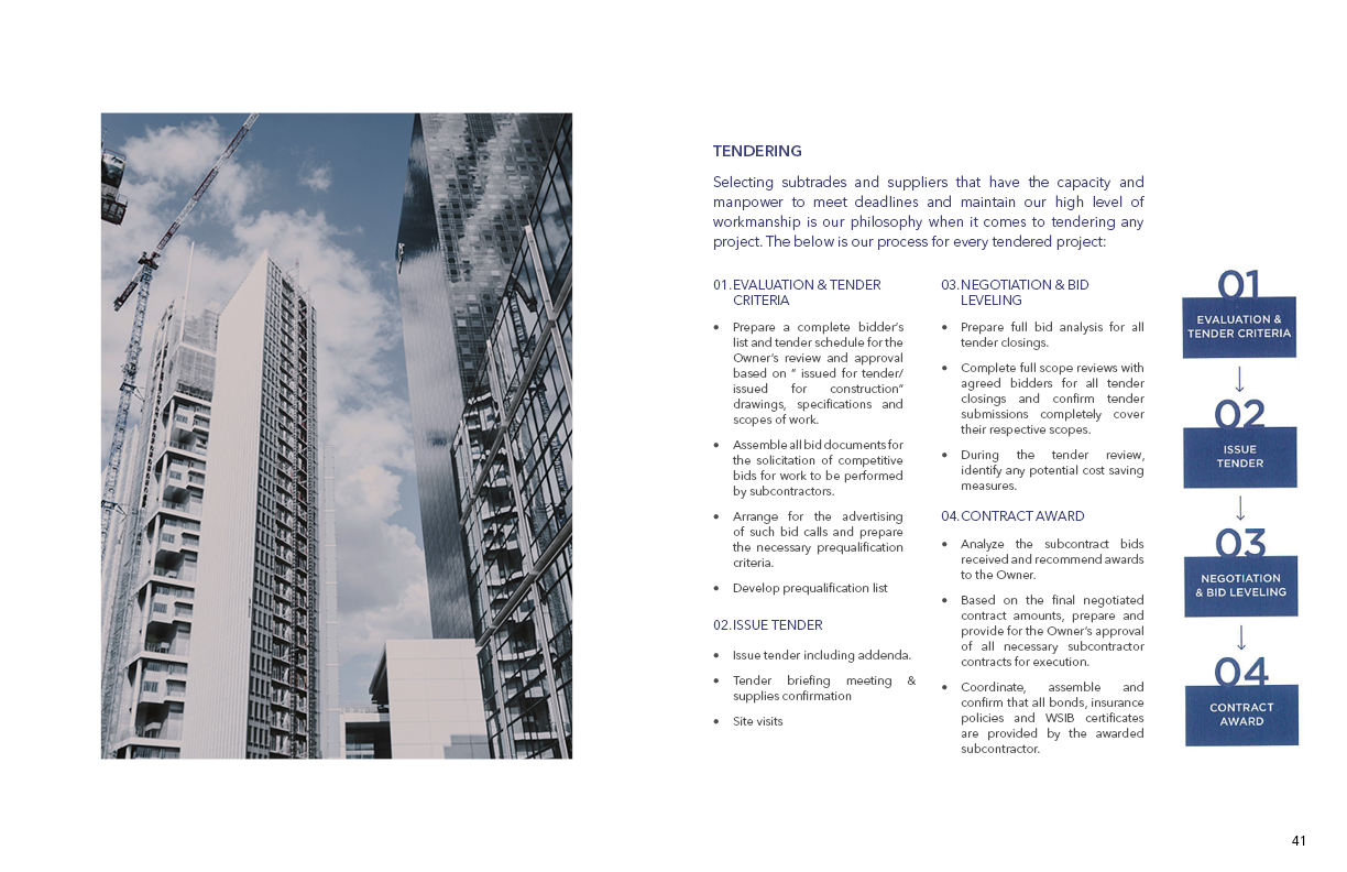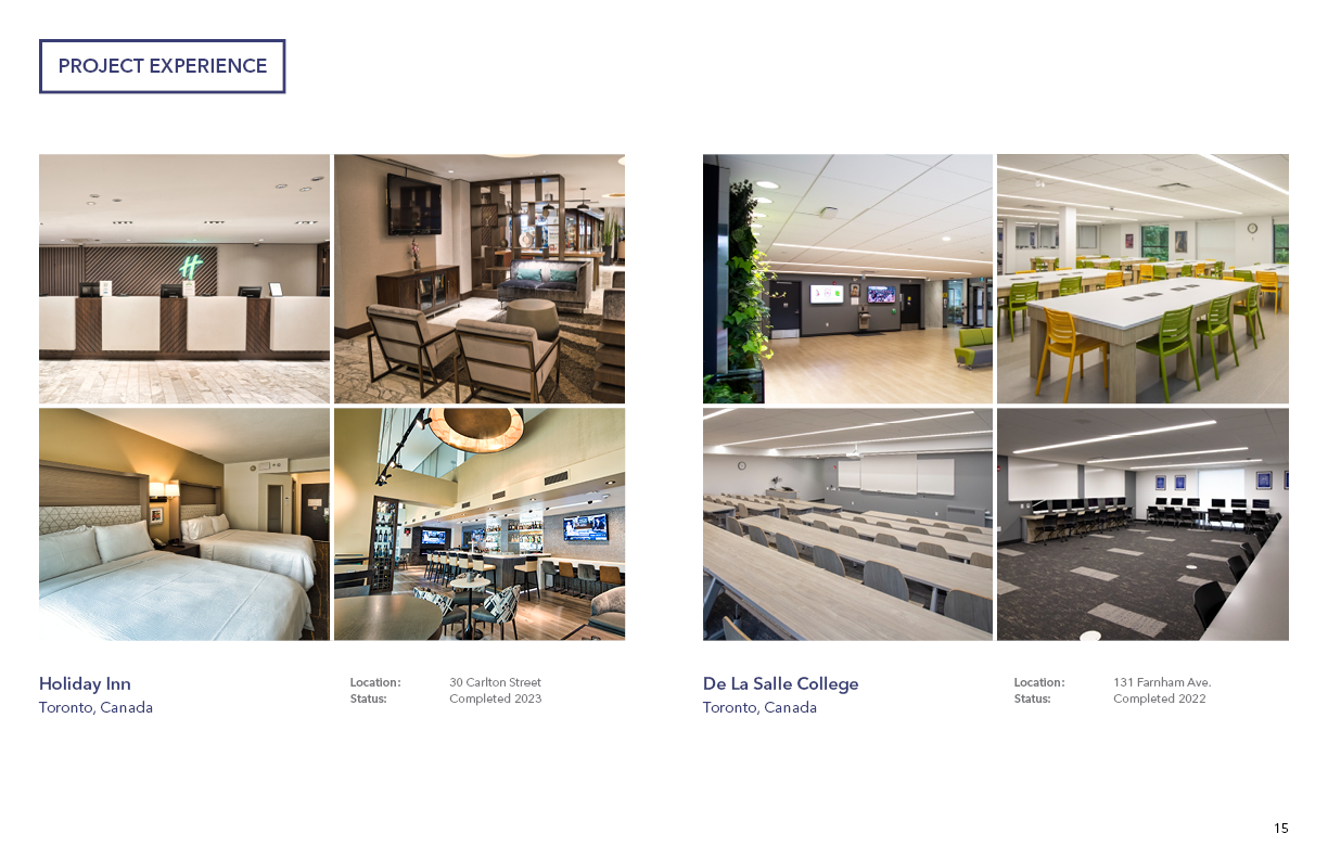 I designed a brochure for Frontier Group specifically for construction bidding proposals, with the goal of presenting the company profile, corporate experience, project experience, and the methodology & approach. Using Adobe InDesign, I structured the layout to ensure strong visual hierarchy and easy navigation through key sections listed above. Adobe Photoshop was used to enhance and retouch project images, ensuring all visuals were high-quality and aligned with the brand’s aesthetic. The final brochure balanced clean design with detailed content, helping the proposal stand out while maintaining clarity and credibility.